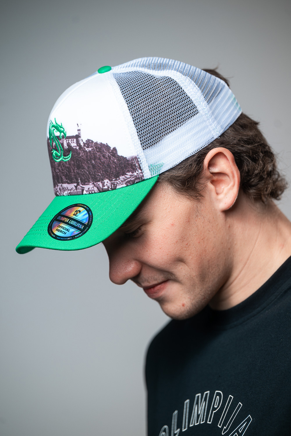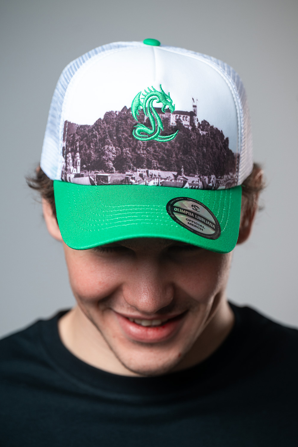 Na sprednjem delu izstopa motiv Ljubljanskega gradu s prepoznavnim logotipom Zmaja, kar ustvarja popolno ravnotežje med tradicijo in navijaškim duhom. Zelena barva šilta in mrežasta zadnja stran poskrbita za športno svežino in udobje v vseh priložnostih – od tekem do sproščenih dni v mestu.