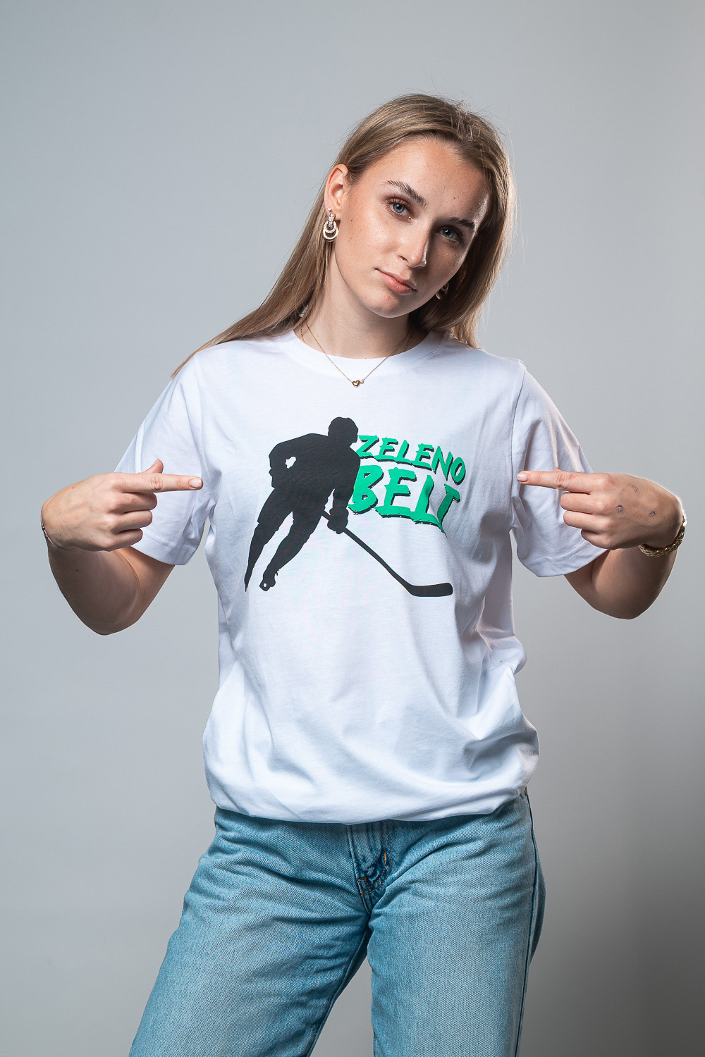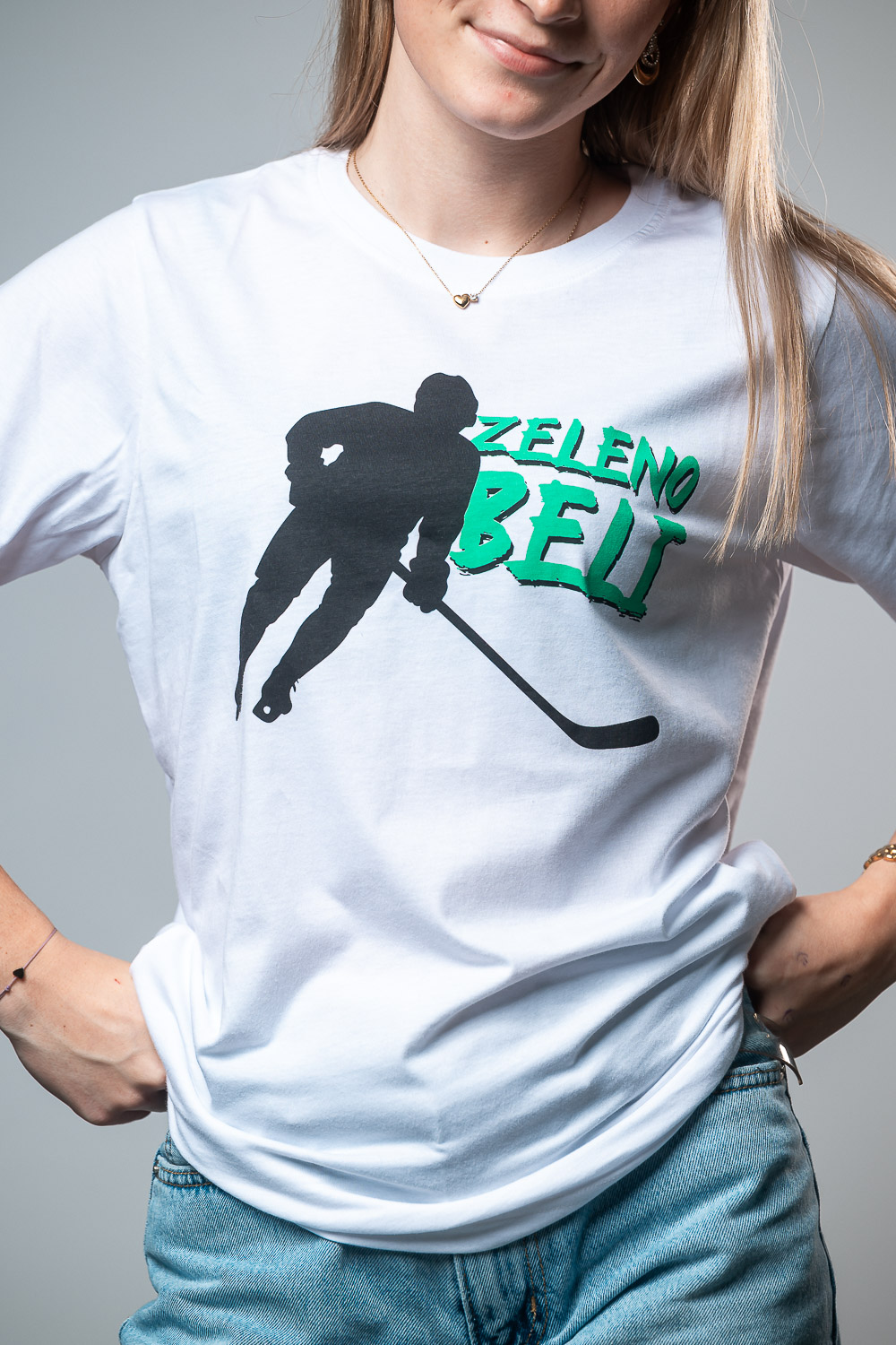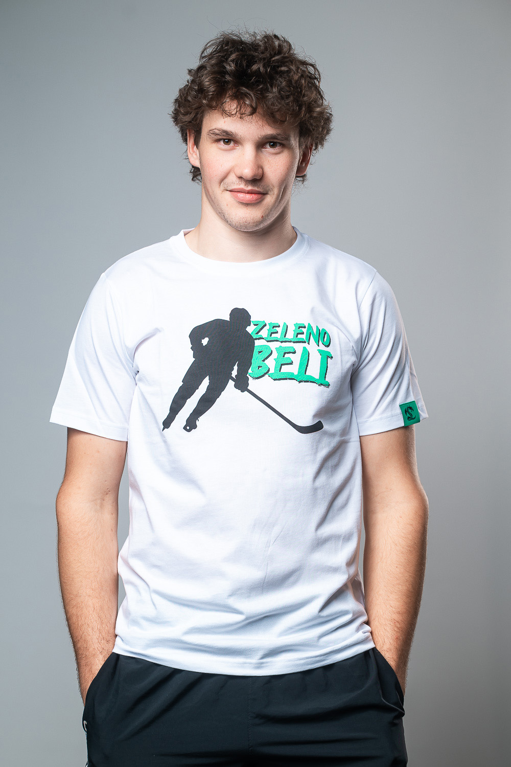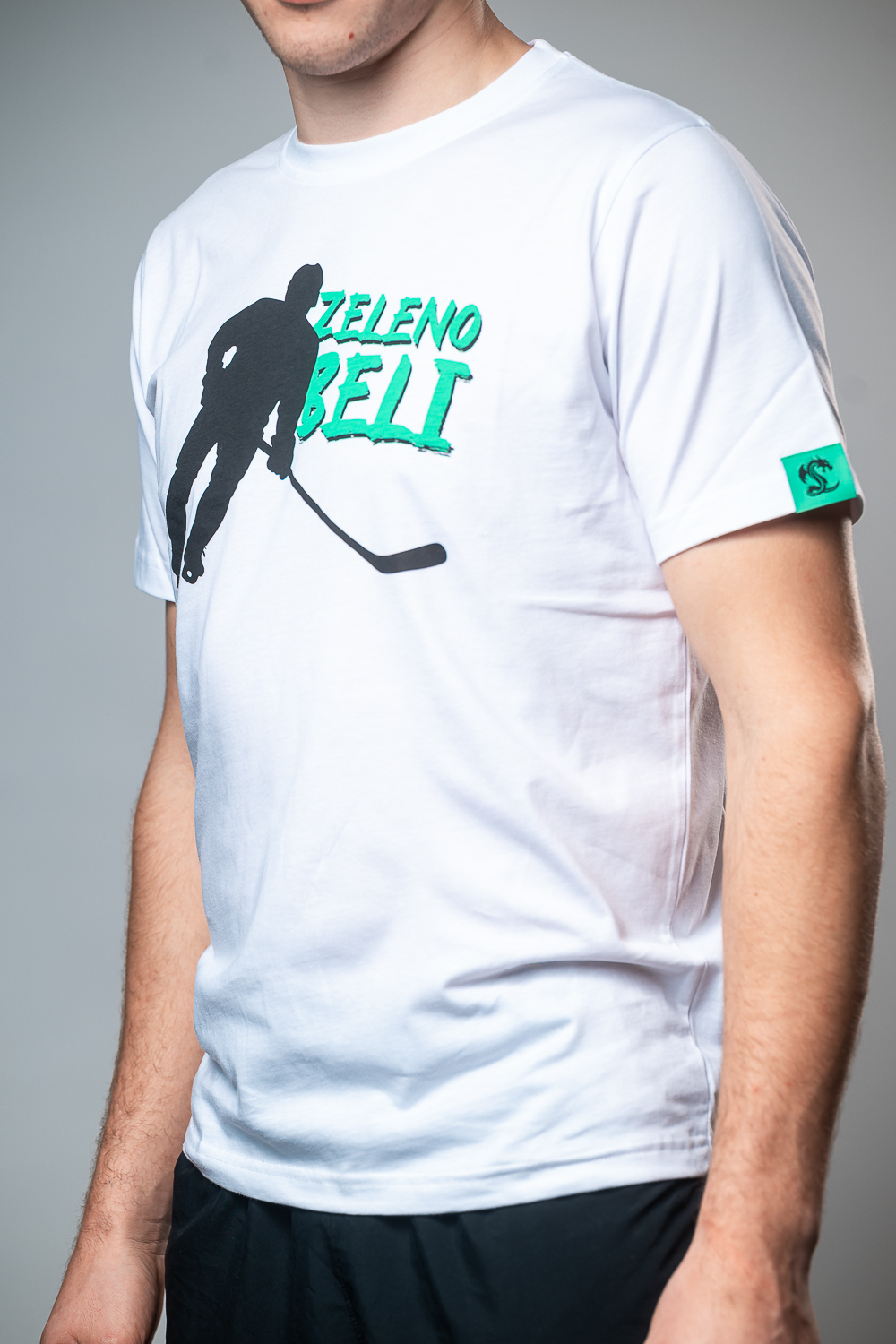 • Potisk hokejista z napisom Zeleno Beli